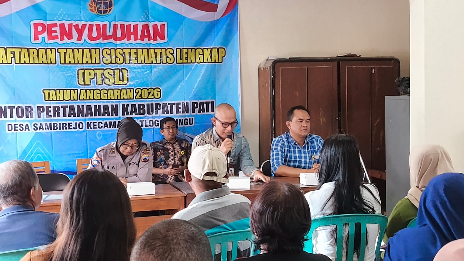 Panitia Ajudikasi PTSL Kantor Pertanahan Kabupaten Pati menggelar penyuluhan di Balai Desa Sambirejo, Kecamatan Tlogowungu, Kamis (11/9/2025).