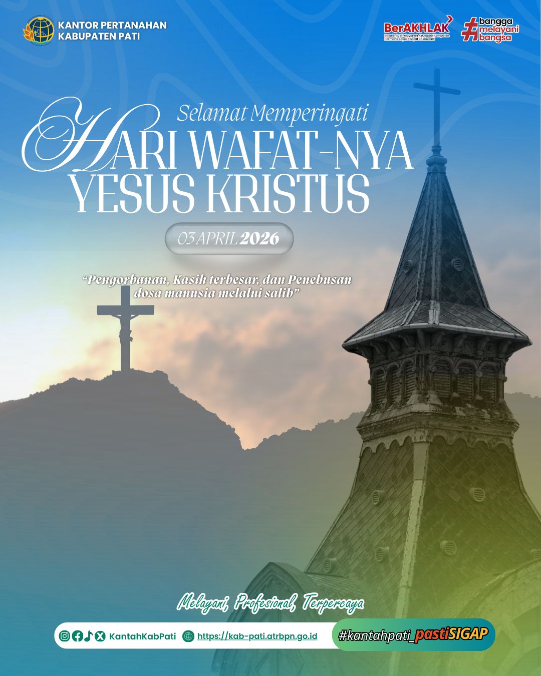 Momentum suci ini mengingatkan kita akan makna pengorbanan, ketulusan kasih, serta pengabdian tanpa batas. Semoga nilai-nilai tersebut dapat kita refleksikan dalam kehidupan sehari-hari, termasuk dalam memberikan pelayanan terbaik kepada masyarakat dengan penuh integritas dan ketulusan.