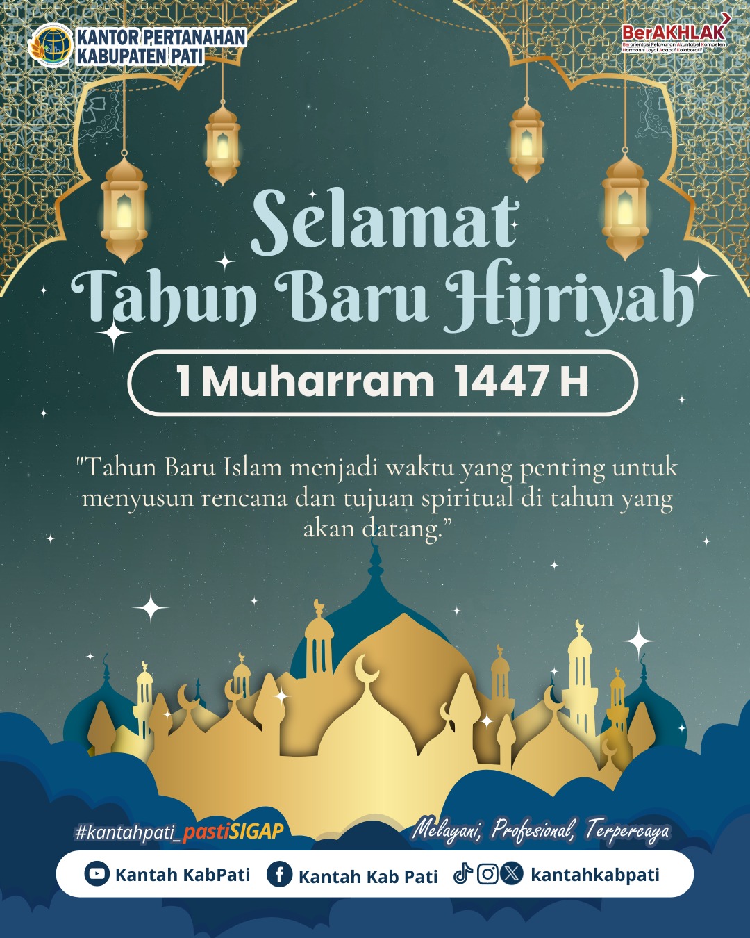 Segenap jajaran Kantor Pertanahan Kabupaten Pati Mengucapkan Selamat Tahun Baru Hijriyah 1447 H.