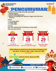 BPN Pati Libur Pelayanan dalam Rangka Hari Libur Nasional Isra’ Mi’raj dan Cuti Bersama Tahun Baru Imlek