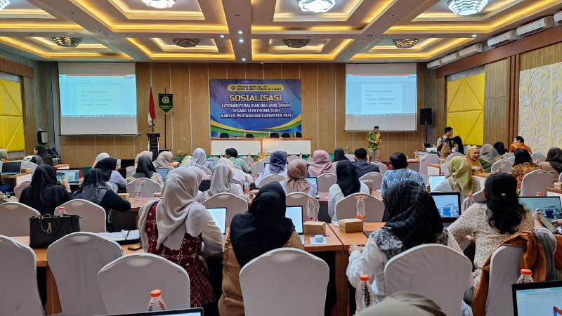 Transformasi layanan pertanahan menuju era digital terus digencarkan. Kepala Kantor Pertanahan Kabupaten Pati, Winarto, melaksanakan sosialisasi peralihan hak atas tanah secara elektronik pada Kamis (7/8/2025) di Hotel New Merdeka Pati.