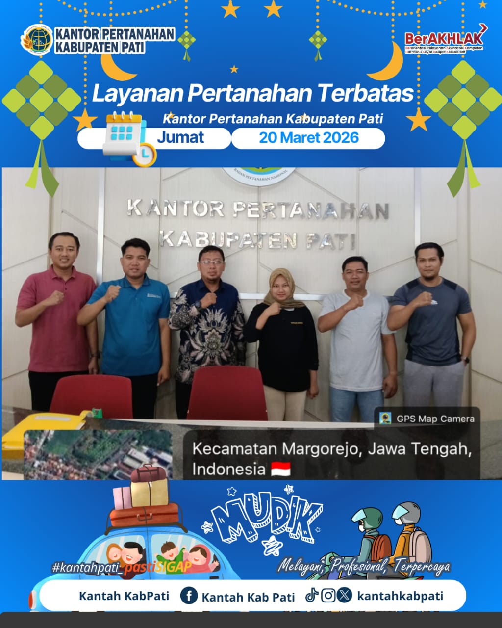 Halo Pemudik Kabupaten Pati, Kami Buka Pelayanan Pertanahan Terbatas Loh. Berikut adalah Pelayanan Pertanahan Terbatas pada Jumat, 20 Maret 2026 🥰
