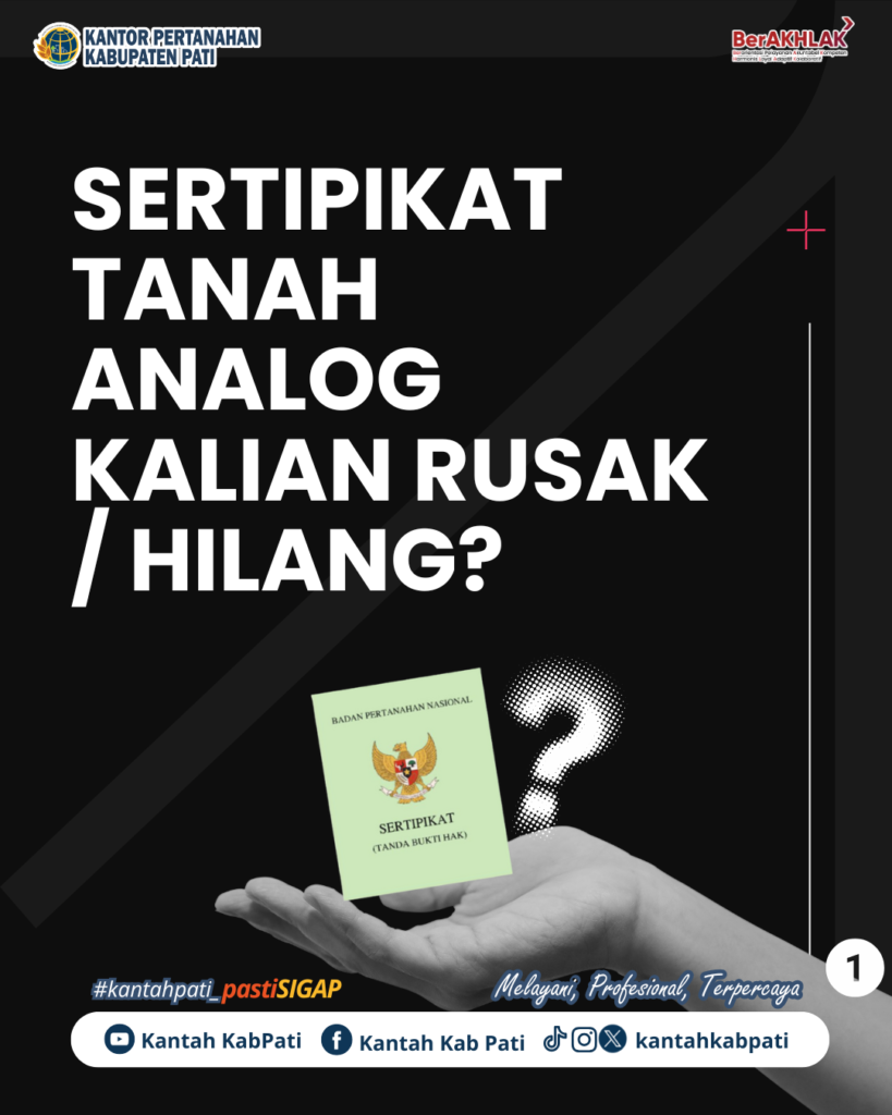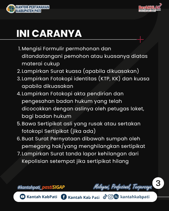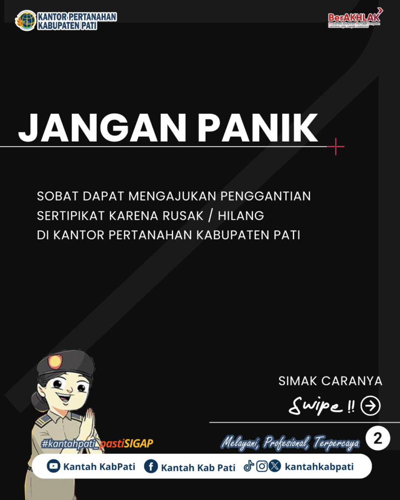 Jangan Panik, Jangan Risau. Kalian dapat mengajukan penggantian Sertipikat karena hilang di Kantor Pertanahan Kabupaten Pati.