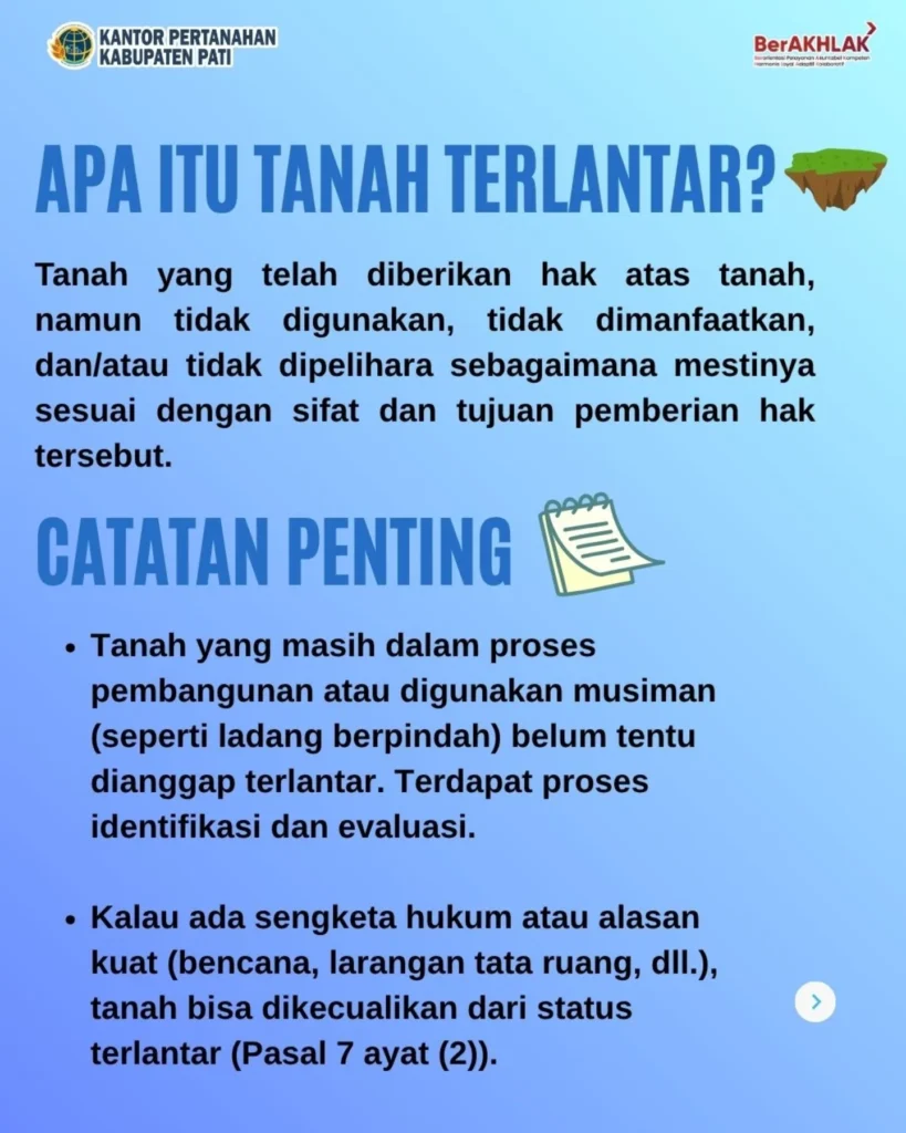 Prosesnya memang nggak langsung, tapi dimulai dari peringatan → pengawasan → pencabutan hak → pengambilalihan oleh negara. Tujuannya? Supaya tanah nggak mangkrak dan bisa dimanfaatkan untuk kepentingan umum atau rakyat yang butuh lahan.