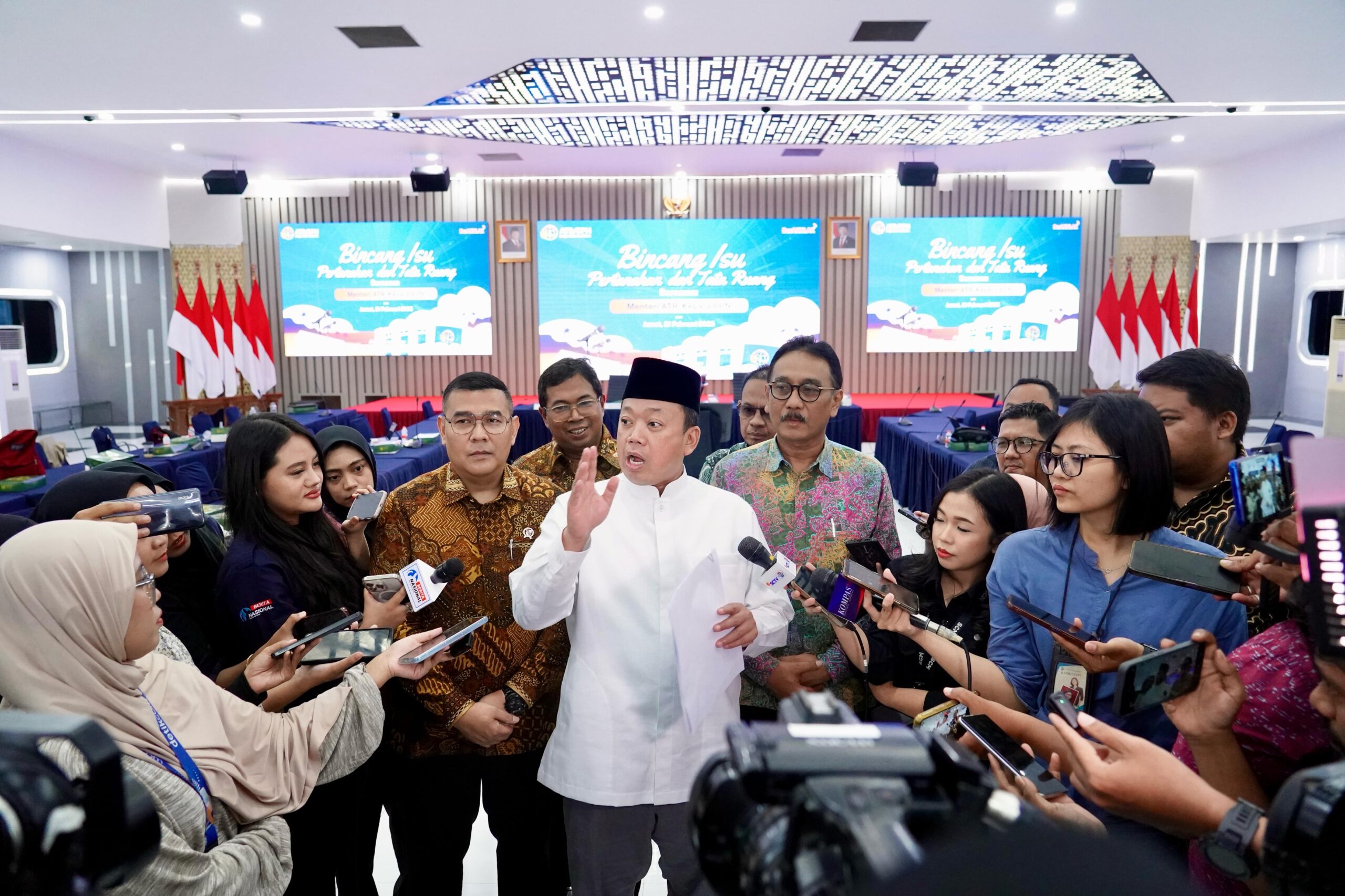 Hadir mendampingi Menteri Nusron dalam Bincang Isu siang ini, Wakil Menteri ATR/Wakil Kepala BPN, Ossy Dermawan; beserta sejumlah Pejabat Pimpinan Tinggi Madya dan Pratama Kementerian ATR/BPN.