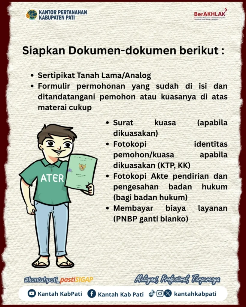 Untuk informasi lebih lanjut, silakan hubungi Kantor Pertanahan terdekat.