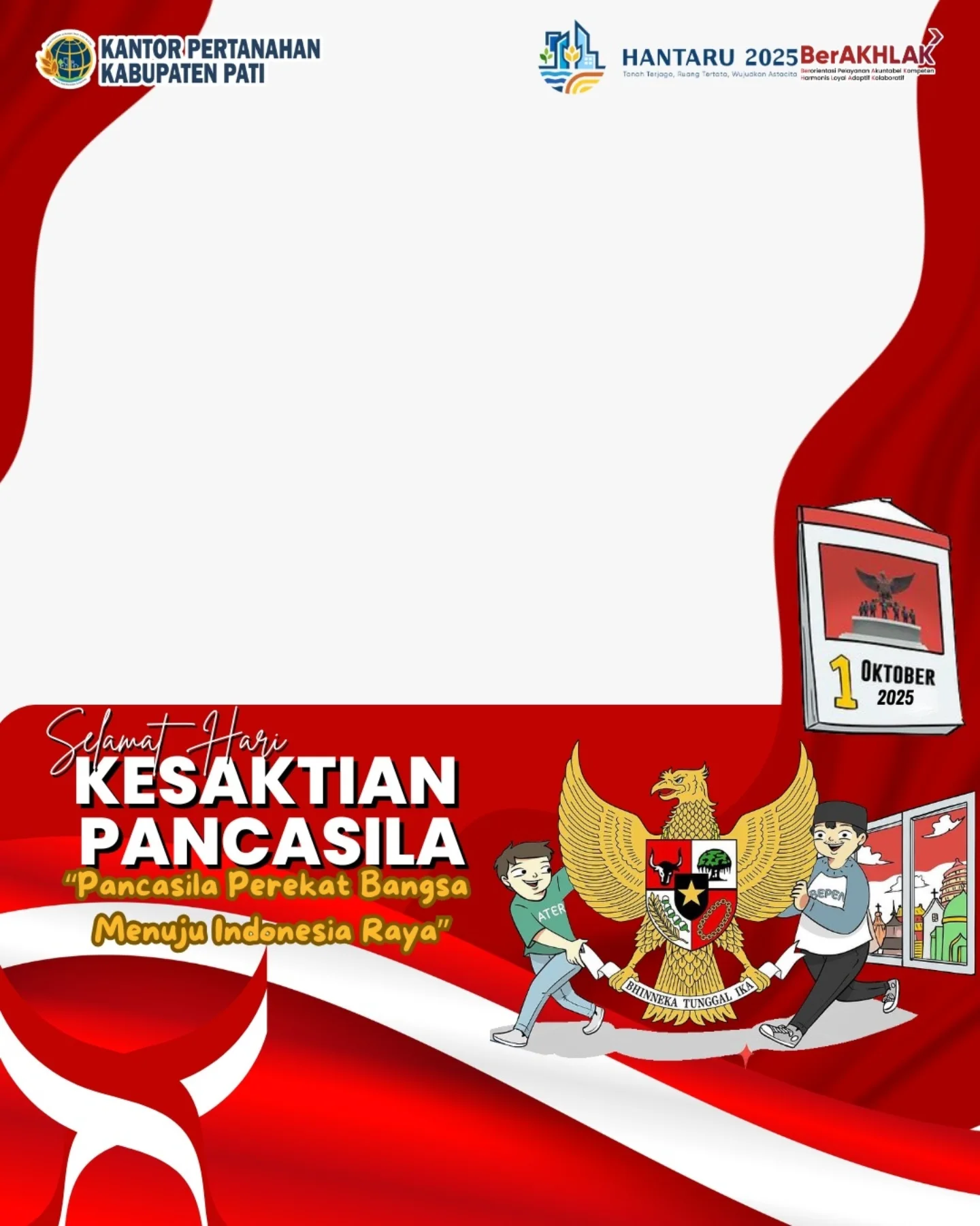 Halo#SobATRBPN, dalam rangka memeriahkan peringatan Hari Kesaktian Pancasila, yuk gunakan Twibbon versi Kantor Pertanahan Kabupaten Pati.